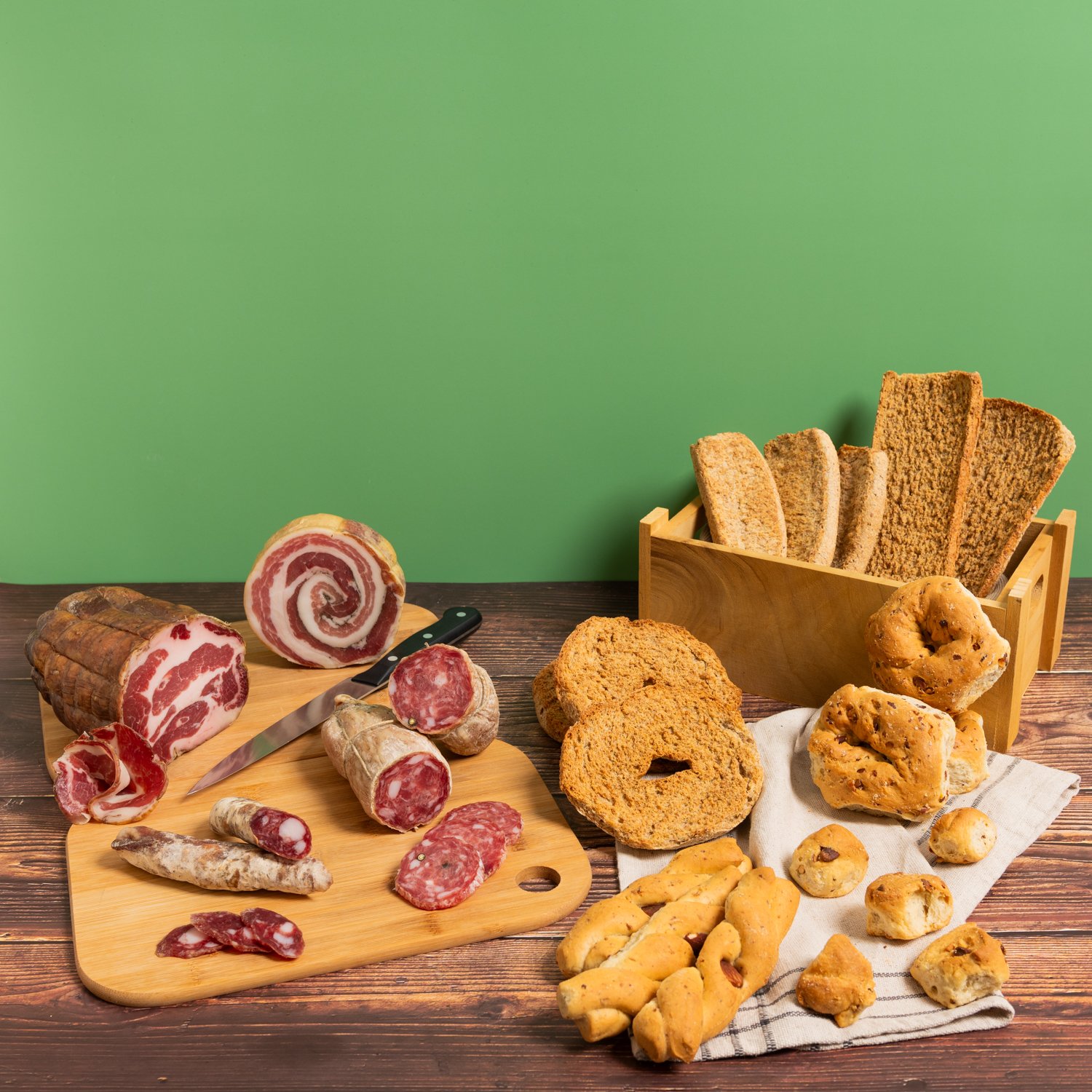 Grissini e biscotti fatti a mano, aromatizzati con erbe e ingredienti tipici della zona.
